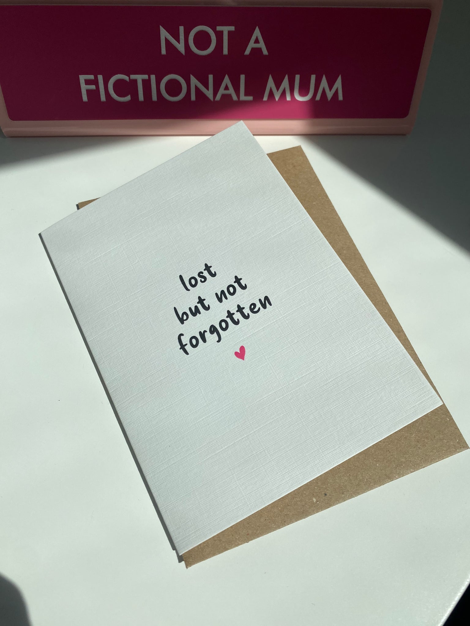 Card reads; 'Lost but not forgotten'