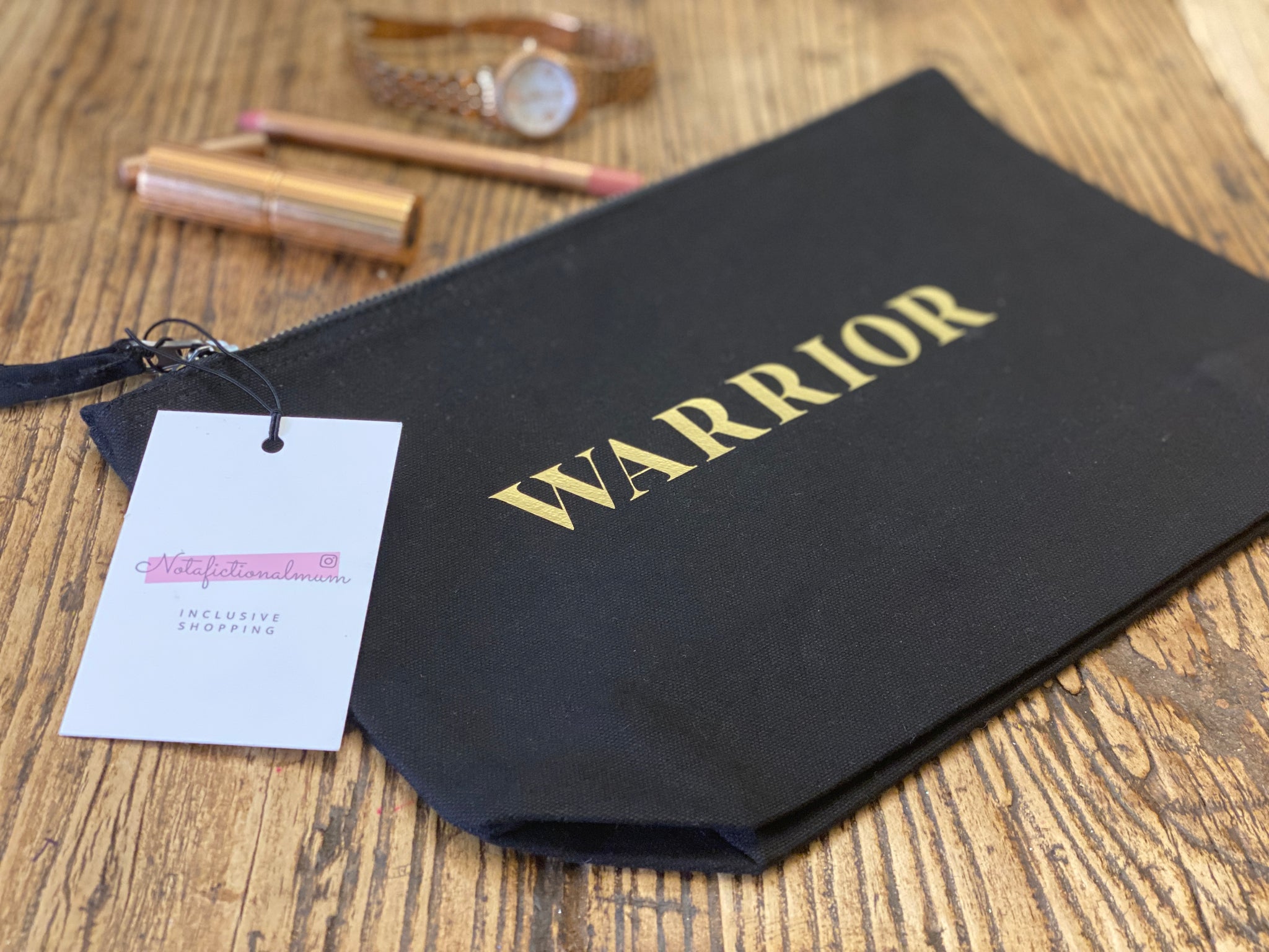 Be ready for anything with this Warrior make-up bag - handstamped in gold with Warrior and NFM branding on the reverse.