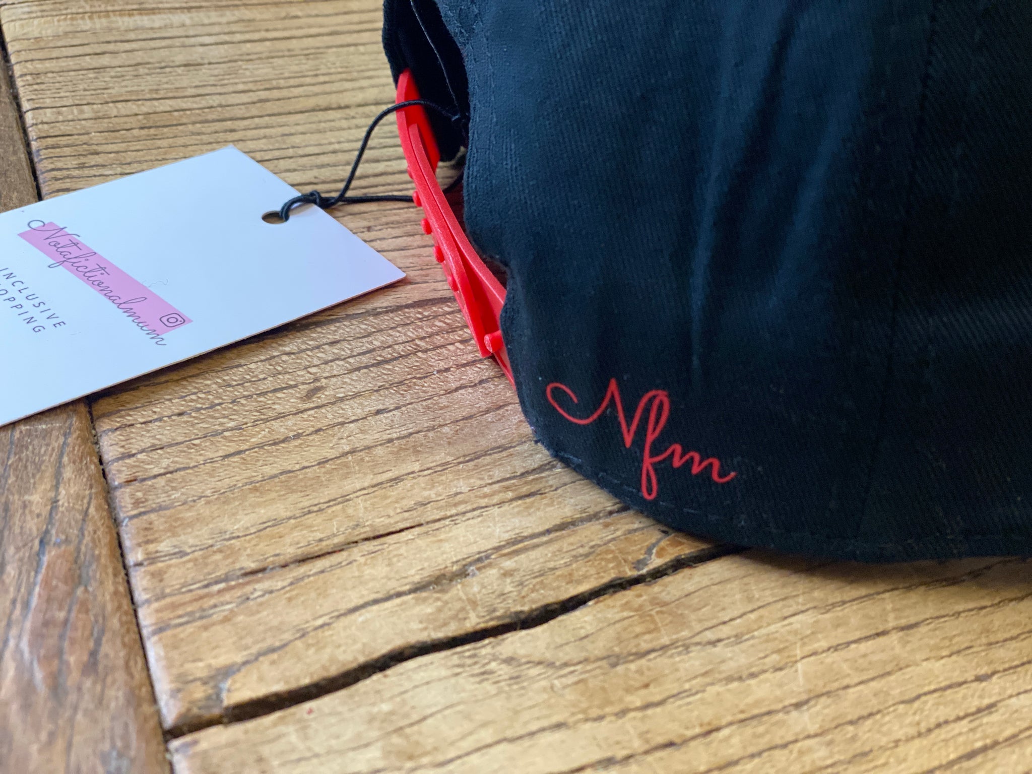 Snapback caps for all the mini dudes and dudettes out there. Black/Grey Superhero squad cap stamped in white and grey with the adoption symbol in the centre, NFM branding on the reverse in grey. Black/Red warrior cap stamped in red with black star on peak, NFM branding on the reverse in red.