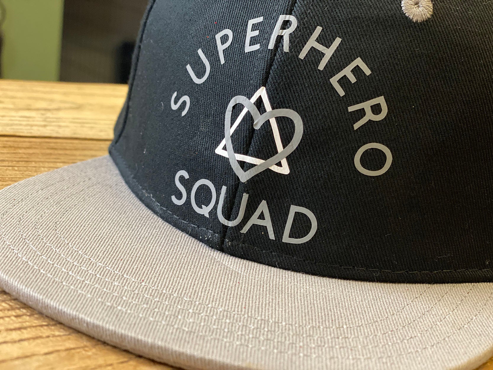 kids-grey-black-baseball-cap-superhero-squad-slogan-close-up