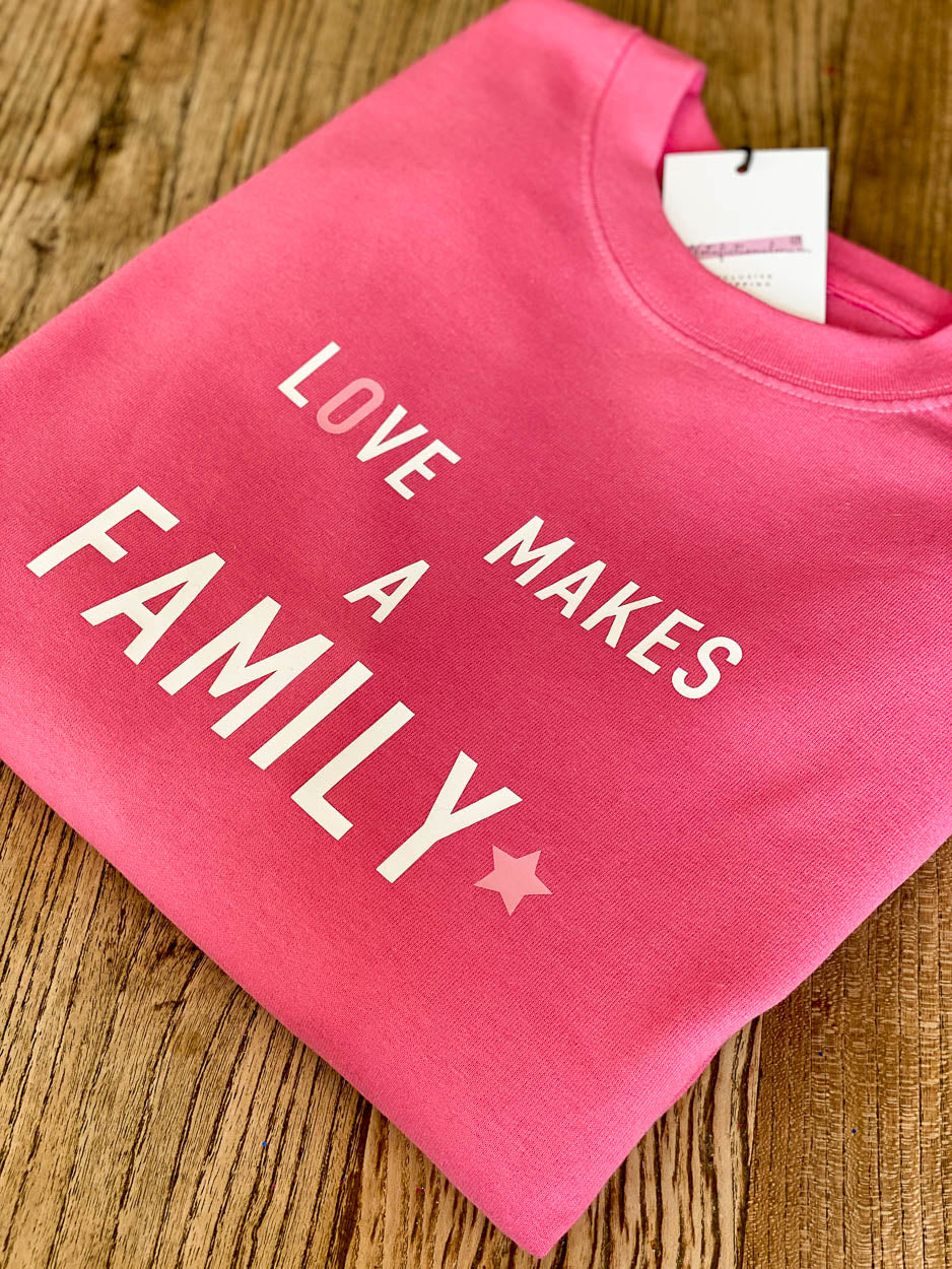 Super comfy, super cosy - the kid's Love Makes A Family sweatshirt says it all. A gorgeous adoption gift – Love Makes A Family adult and children's matching family sweats available.