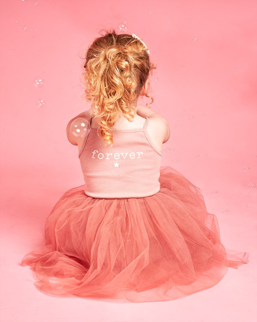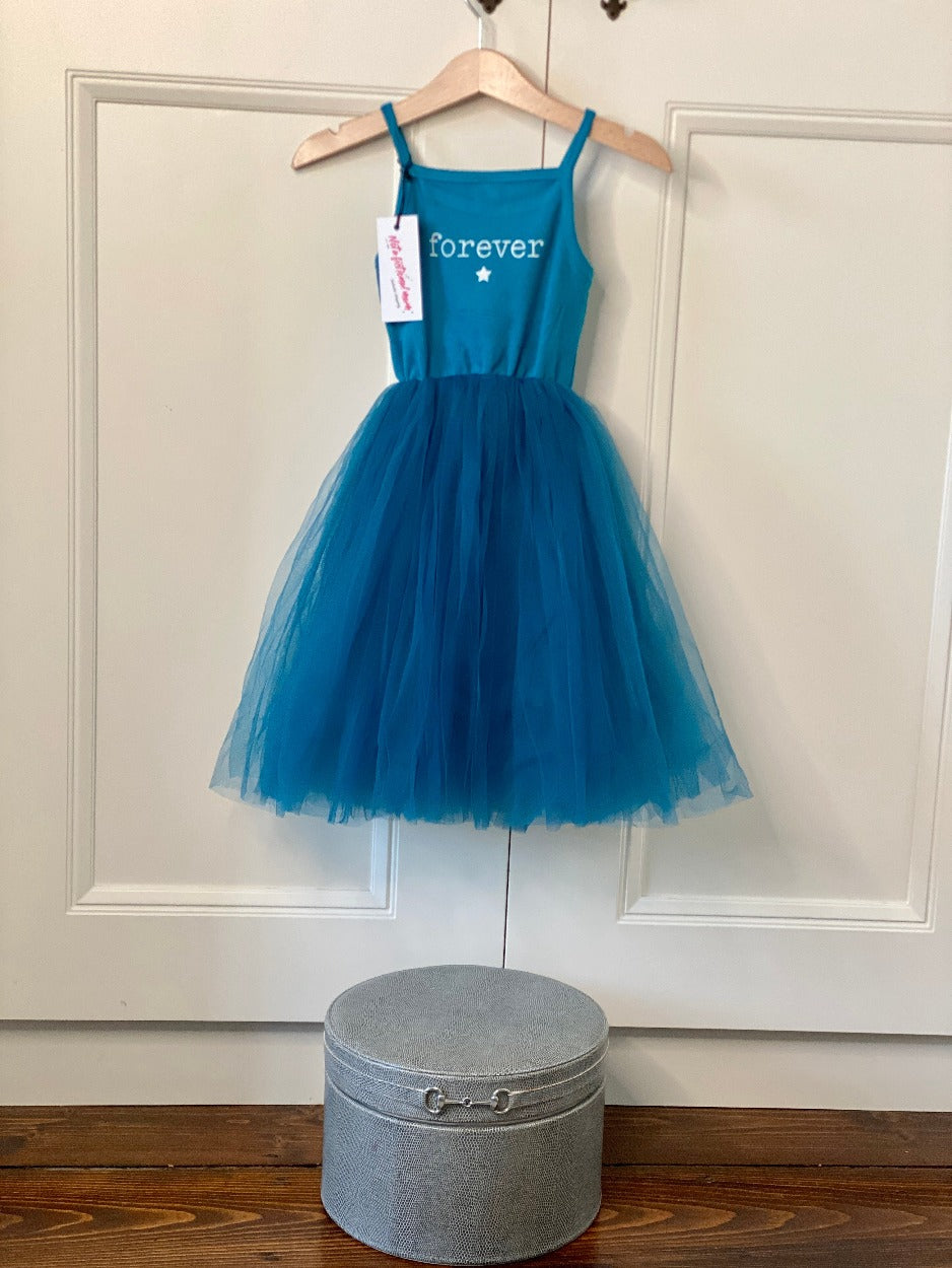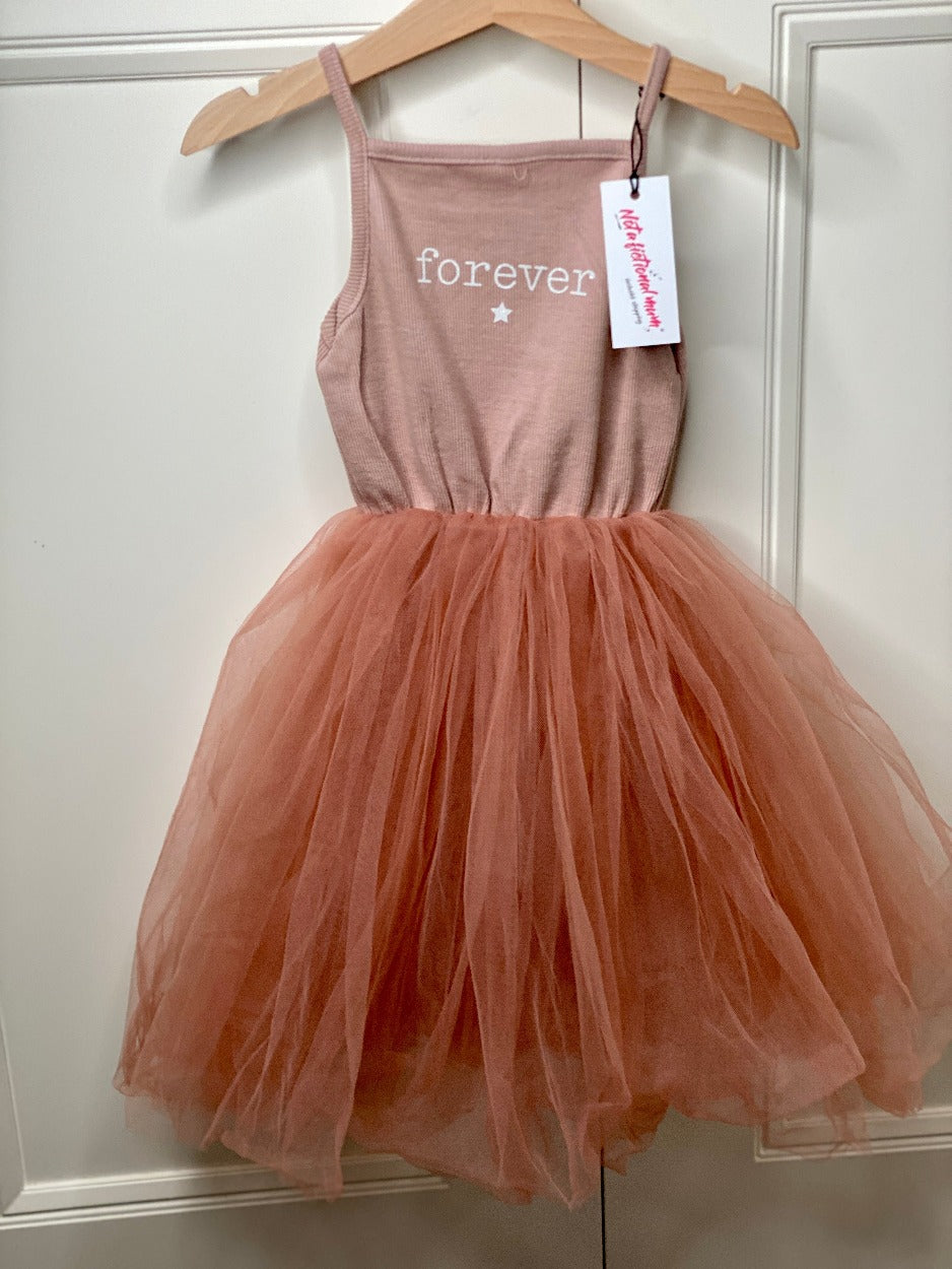 The stunning tulle skirt, forever fairy dress is the ultimate celebration dress. Choose from Dusky pink or vintage grey White sparkle forever and star hand stamped design on the reverse.