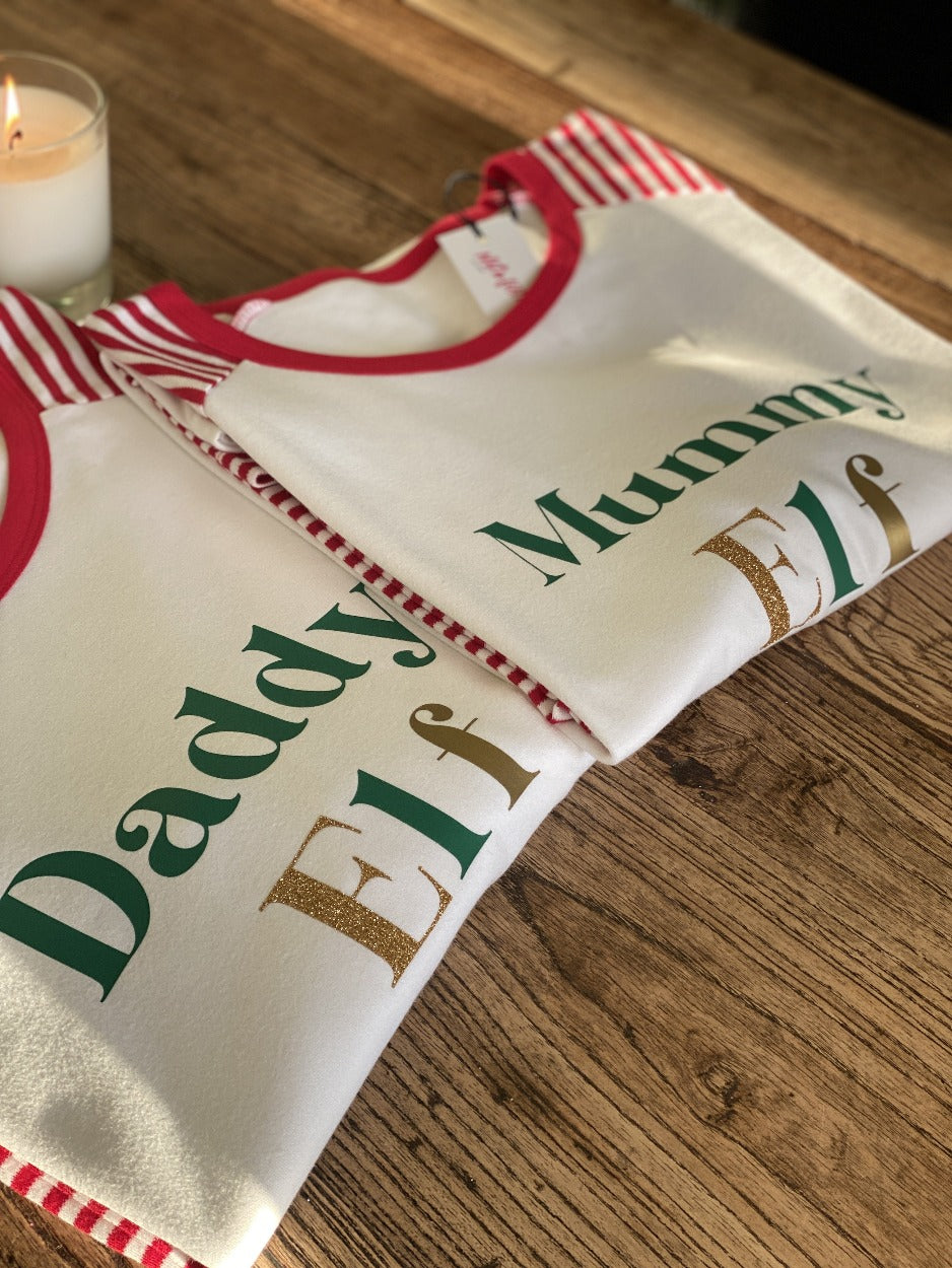 Beautifully soft elf family Christmas PJ set for the whole family.  Inclusive Matching pyjama Sets for adult and mini make a gorgeous Christmas gift.