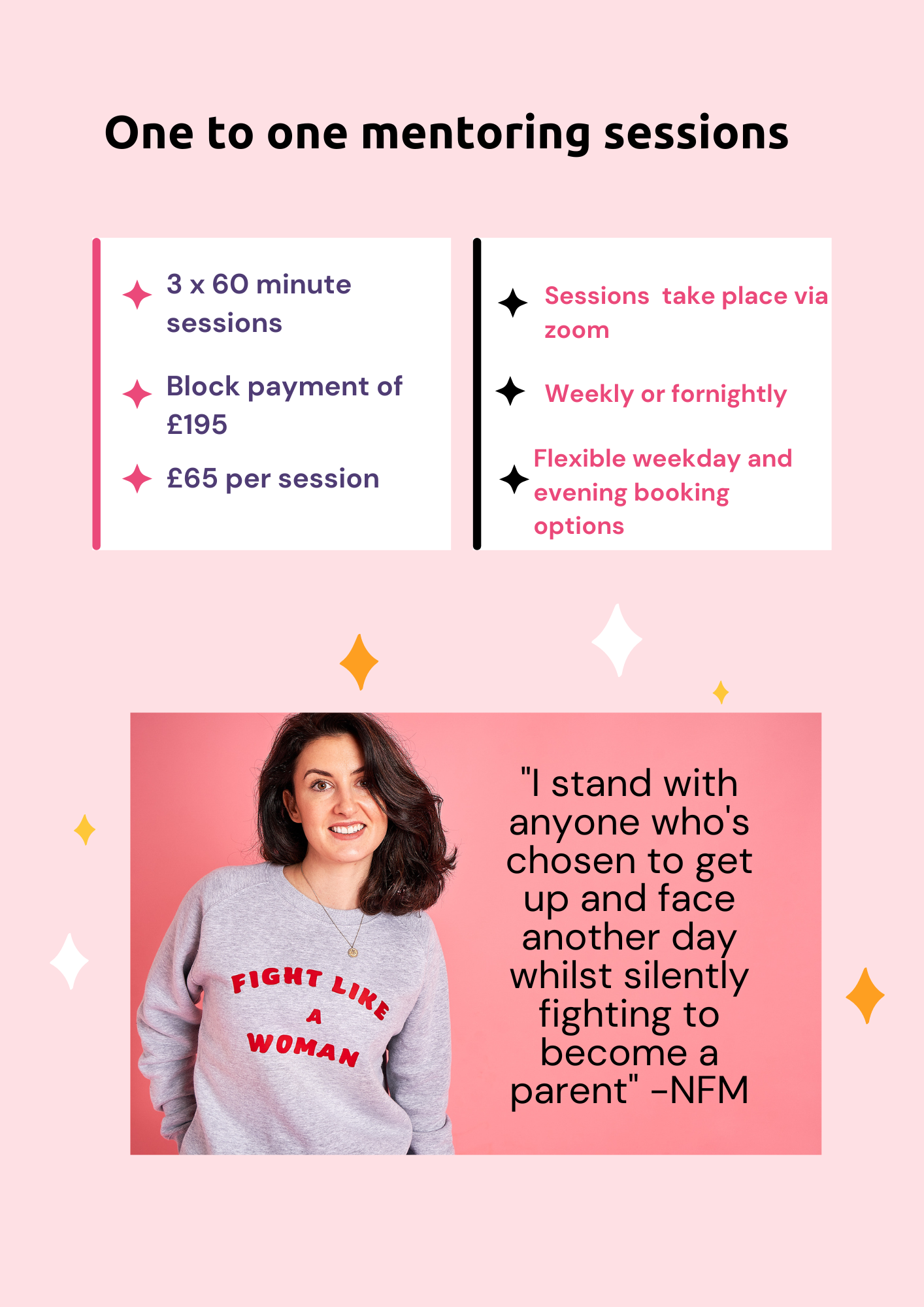 Infertility and adoption mentoring sessions will take place via Zoom. You decide when these sessions will work best for your schedule with flexible weekday and evening sessions available. You also have the choice of using these sessions weekly or fortnightly. Mentoring sessions are designed to be of help, not another thing to add to the; 'To do' list so I will always endeavour to make these work for you.